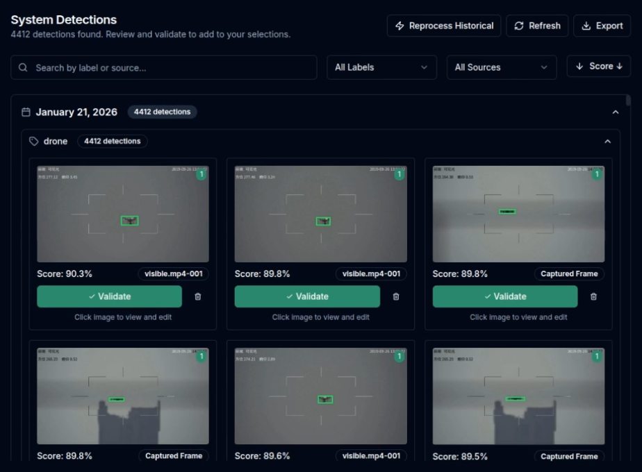 IRIS surfacing candidate detections for validation during model development
